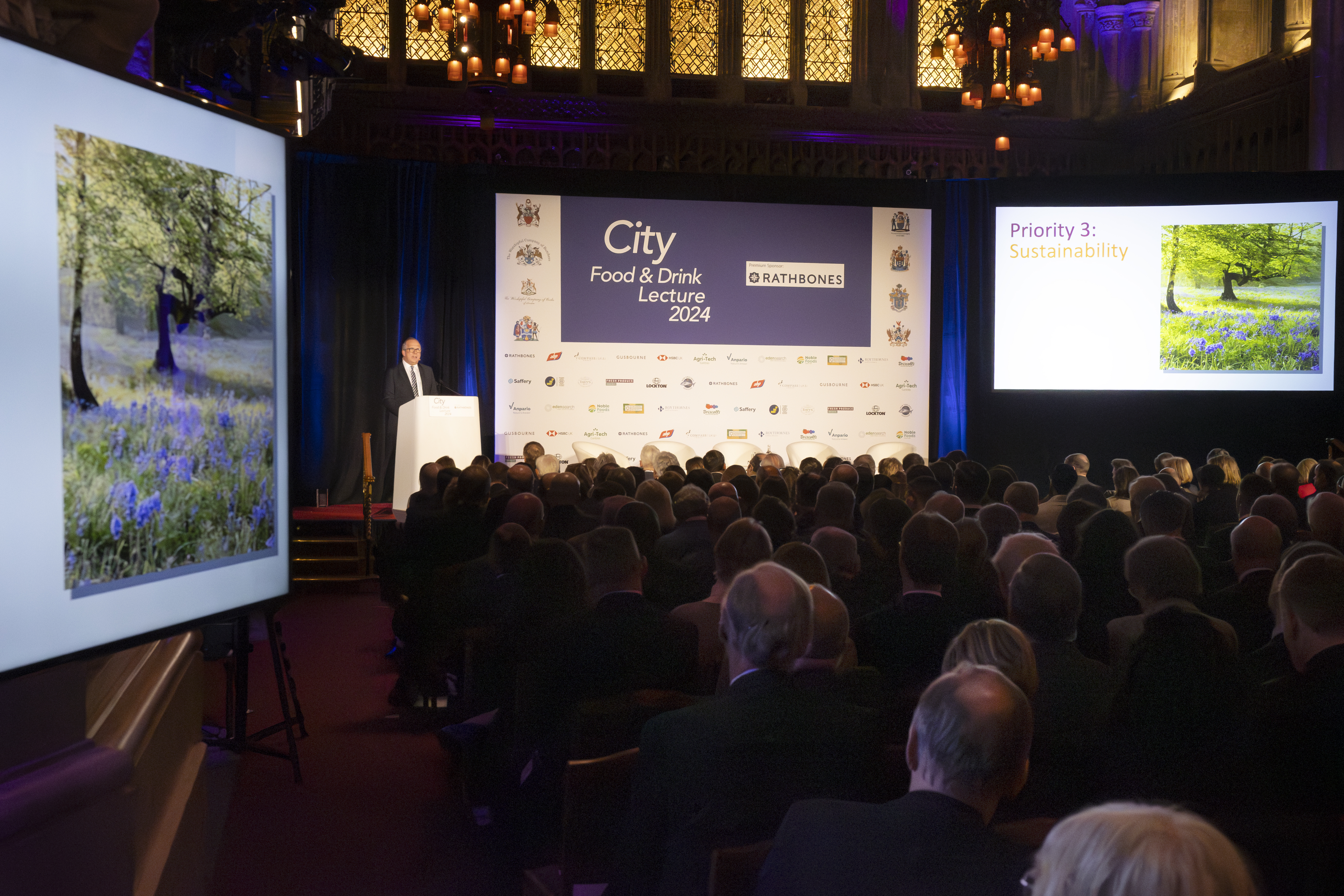 Held in the Great Hall at the prestigious Guildhall the hybrid event is attended live by 550 and a further 300 virtual audience from around the world. The City Food & Drink Lecture is organised by the eight City livery companies whose roots are in the food industry – namely the Worshipful Companies of Bakers, Butchers, Cooks, Distillers, Farmers, Fishmongers, Fruiterers, Poulters